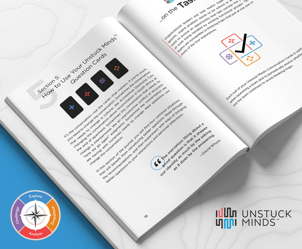 As Creative Director on Unstuck Minds’ custom client workshop experiences, I created tailored branding, language, and exercises that aligned with each client's culture and strategic goals. This included designing immersive sessions with client-specific visuals, tools, and narrative elements—often featuring fictional brands and real-world scenarios that helped participants explore decision-making and behavioral responses during major change events like mergers and culture integrations. I also developed leadership workshops and materials, and created fully branded, trademarked versions of Unstuck Minds’ products for enterprise clients, delivering long-term brand engagement and lasting relationships with Unstuck Minds' partners.