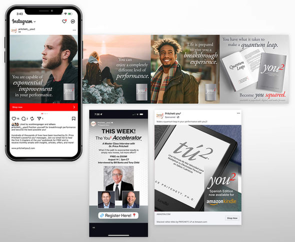 In addition to modernizing PRITCHETT's offerings, I spearheaded the separation of the offering categories into three distinct, discipline-focused websites for better product understanding and user experience. One would become a lifestyle brand of its own, centered around Dr. Pritchett's handbooks, you² and The Quantum Leap Strategy, and would ultimately lead to higher-ticket products, programs, social presence, digital storefront, and dominance in an entirely new niche market for PRITCHETT.
